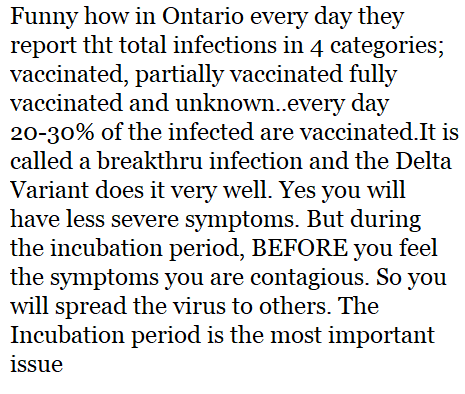 To receive Emergency Use Authorization from the FDA, vaccine makers had to show the vaccines were at minimum 50% effective at preventing serious symptoms of COVID-19 disease – by August the Pfizer vaccine was at 42% and plummeting. They were not required to demonstrate that the shots prevent SARS-CoV-2 infection or that it prevents transmission of the virus. They’re always talking about prevention of hospitalization and death but that is not what people think happens when you get a vaccine. We have been carefully taught to believe that when we get vaccinated, we will not get infected and we won’t transmit that infection to other people.